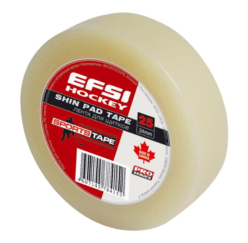 Универсальная лента для фиксации щитков изготовлена из смеси натурального и синтетического каучука. За счет того, что клеевая основа ленты не оставляет следов, её можно наматывать прямо на гамаши, надеваемые поверх щитков.